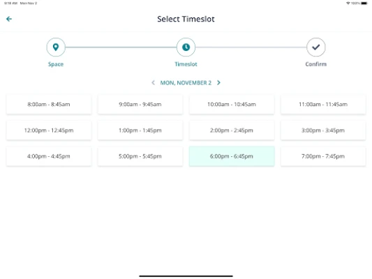 Users can see the space/equipment availability, book their preferred timeslot, view and cancel existing reservations, and receive push notifications about their bookings.