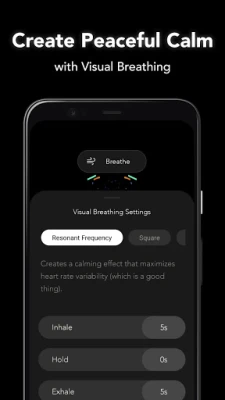 • Visual Breathing; the speed of visuals will automatically adjust to your selected breathing pattern.