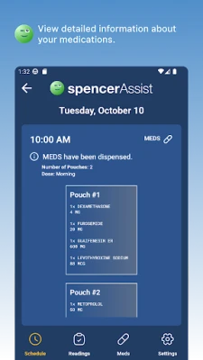 - Remind patients when it’s time to take their previously dispensed medication packs using spencer’s Meds on the Go feature